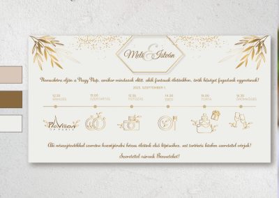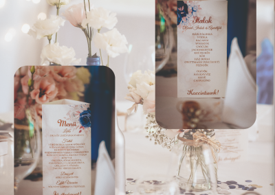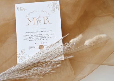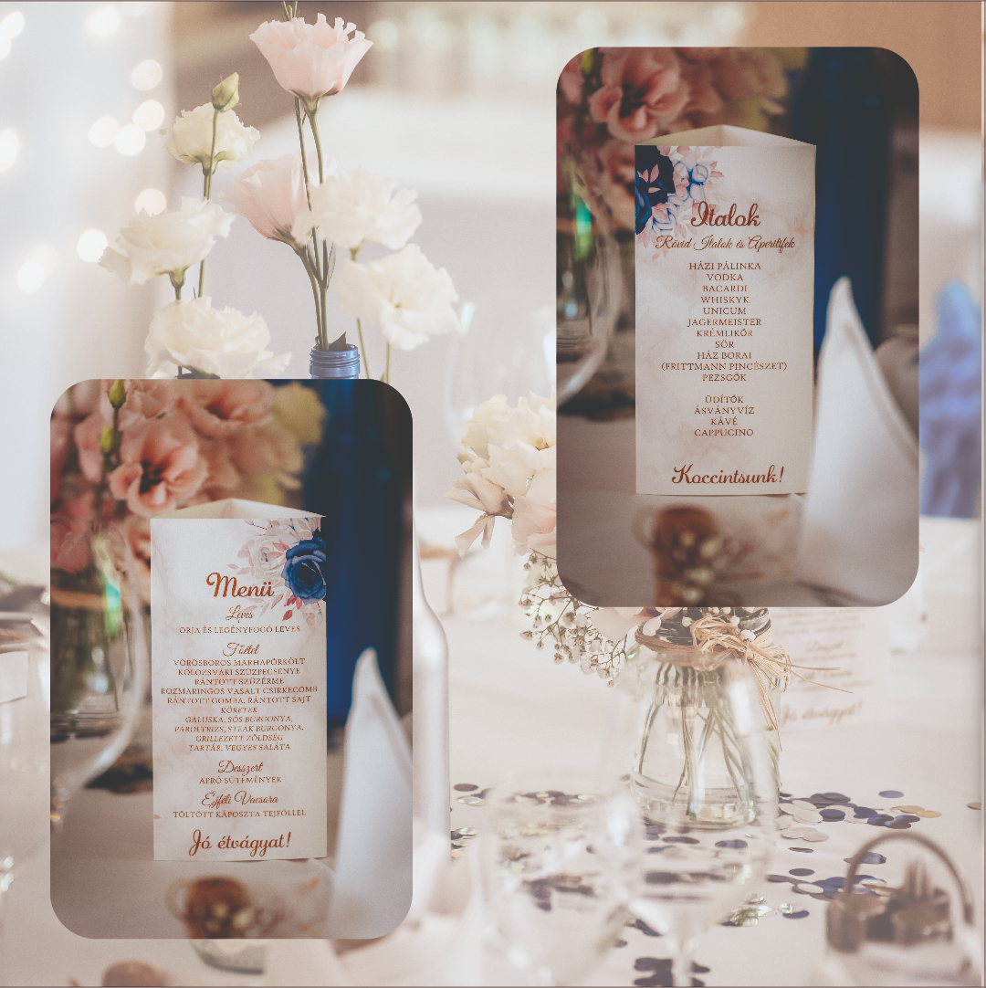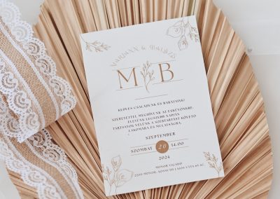 Együtt tervezzük meg a grafikai anyagokat, hogy a nagy nap minden részlete tökéletes legyen. Megalkotom az egyedi meghívókat, menükártyákat és ültetőkártyákat, amelyek stílusosan illeszkednek az esküvőd tematikájához. Kreatív ötletekkel és részletes tervezéssel gondoskodom arról, hogy minden részlet tökéletesen illeszkedjen az álomesküvődhöz.
